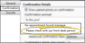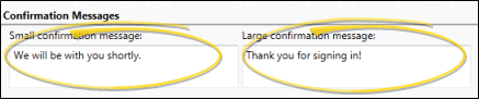 Confirmation messages - Type a primary and secondary message for your patients to see as they complete the Patient Sign-In process.