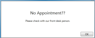 No appointment - Type a message to display when a patient that does not have an appointment scheduled for today attempts to sign in. We suggest Check with our front desk person please or something similar.