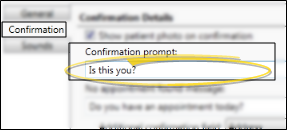 Patient confirmation prompt - Type a message that prompts your patients to confirm that the displayed information is theirs. We recommend the default prompt Is this you or something similar.