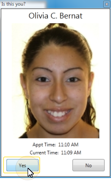 To complete the sign-in process, verify that the displayed patient information is correct, and click or touch Yes. Patient alerts, notifications, and sounds may be triggered after the patient is confirmed. Read the messages that appear on the screen, then select Ok to continue. (See "Get Started with Patient Sign-In" for details.)