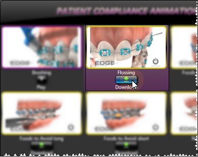 You can download and play Compliance Animation videos to help patients and parents gain a better understanding of the importance of properly caring for themselves and their orthodontic appliances. Compliance Animation videos do not require Edge Animations, and cannot be edited. They are available as-is for any practice that uses Edge Cloud.