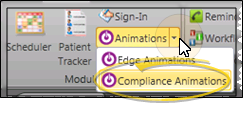 Animations icon from the Home, Patient, or Imaging ribbon bar, and choose the Compliance Animations option. (You can also open this feature from the Quick Access toolbar at the top of your Edge Cloud system window.)