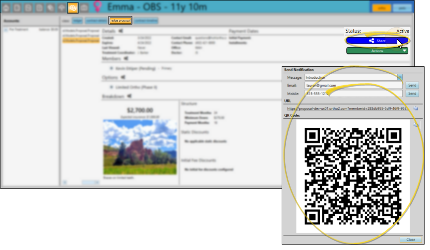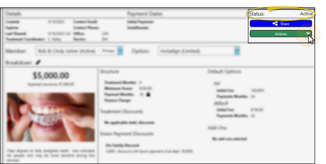 You review, edit, activate and share proposals from the Finance page of the patient folder. Proposal details can be edited while they are "Pending" or "Active" status. Once a proposal is "Active", you can share it with responsible parties so they can use the Edge Proposal app to choose their treatment and payment options. Finally, when a proposal is "Accepted" by the family, it is time to create the contract.