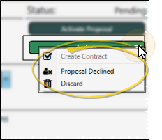 The status, shown at the right of the window, indicates how close the proposal is to becoming a contract.