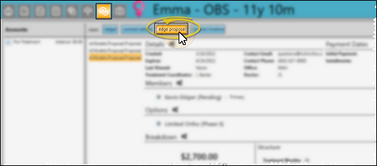 Open the patient's Finance page and select the Edge Proposal tab. Then, if the patient has multiple proposals, choose the proposal to work with from the list at the left.