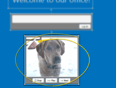 Slideshow - Add interest to your sign-in screen with a slideshow of photographs or other images.To add a slideshow to your screen, click Add from the Sign-In Editor ribbon bar, and select Slideshow. Then navigate to the folder that contains the pictures you want to include in the slideshow, and click to position the object on your screen. All image files in the selected folder will be included in the slideshow: Whenever you add or remove images from that folder, your slideshow will be updated as well. You can right-click within the element to modify additional properties, such as hiding the slideshow controls from your patients.