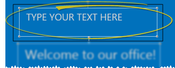 Text - Use text objects on your sign-in screen to greet patients and remind them of upcoming events at your office. Note that you can use returns and tabs in the box to create multi-line messages.To insert a new text box, click Add from the Sign-In Editor ribbon bar, and select Text. Then click to position the object on your screen, and type the text you want to appear in the box. You can then click and drag to move the element, and right-click within the element to modify additional properties.